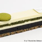 La garniture est consituté de shiroan bio au thé matcha, une pâte de haricots blancs aromatisée. La saveur du matcha est facilement reconnaissable mais reste judicieusement modérée. Nous y ressentons les notes végétales et iodées attendues, ainsi qu’une pointe d’amertume en fin de bouche qui peut heureusement passer inaperçue. La texture du shiroan est très fine, comme une purée. Il est élastique et un peu collant, il adhère d’ailleurs fortement à la pâte et se déforme avec.