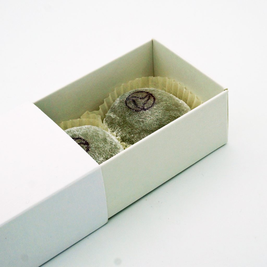 Ces mochis sont tous faits selon une structure traditionnelle de pâte de riz englobant une purée d’haricots. Les différents arômes que nous avons choisis sont le Matcha, l’Anko, le Sésame noir et le Yuzu-Citron.